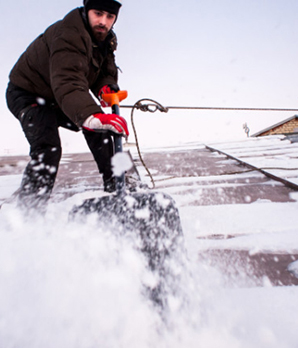 Очистка поверхности от наледи при помощи лома и механизмов, предназначенных для дробления льда. Для круто скатных крыш применяются реагенты.